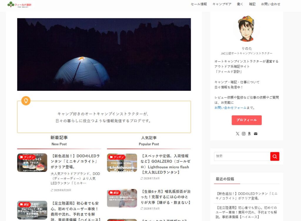 「フィールド設計」は、アウトドアを中心に体験談や役立つ情報を発信する雑記サイトです。
